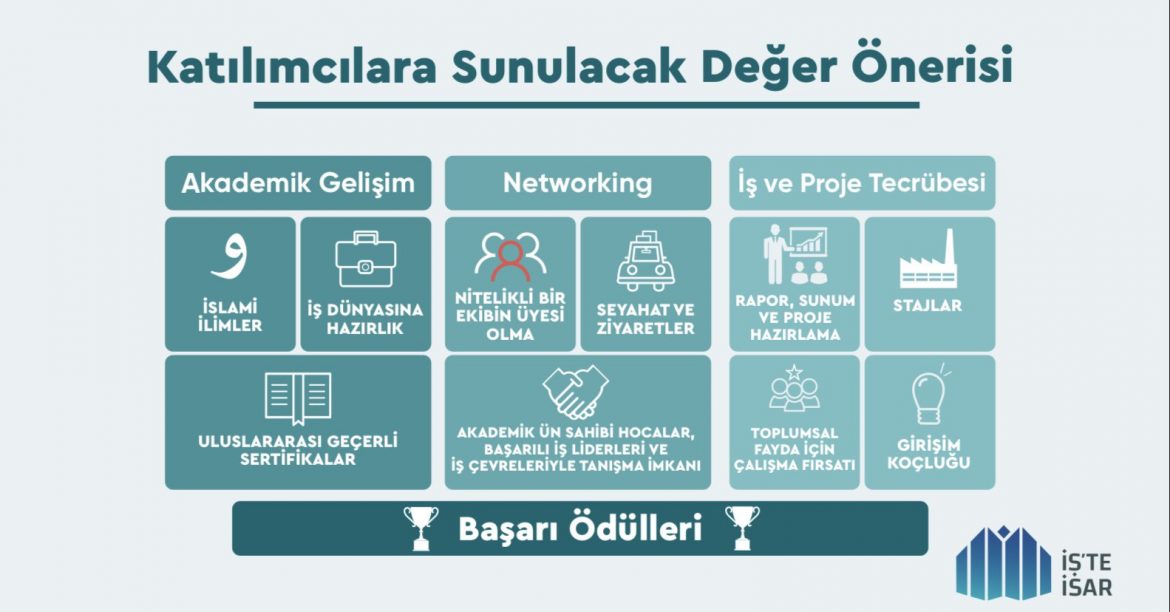 İŞ’TE İSAR, verdiği eğitimler aracılığıyla birçok eğitim programı içeriğini ve seminer harici konferans/panel/teknik gezi/staj vb. imkanları öğrencilerin istifadesine sunmaktadır. Bu eğitimler sayesinde öğrencilerin dinî ilimlerde belli bir seviyede bilgi sahibi olması amaçlanır. Bunun yanı sıra, iş dünyasına yönelik etkin programlar aracılığıyla iş hayatı müfredatına hazırlıklar yapılır. Programa katılım sağlayan öğrenciler başarıyla tamamladıkları eğitimlerden sertifikalar alırlar. İş dünyasına yönelik akademik gelişim İŞ’TE İSAR’da.