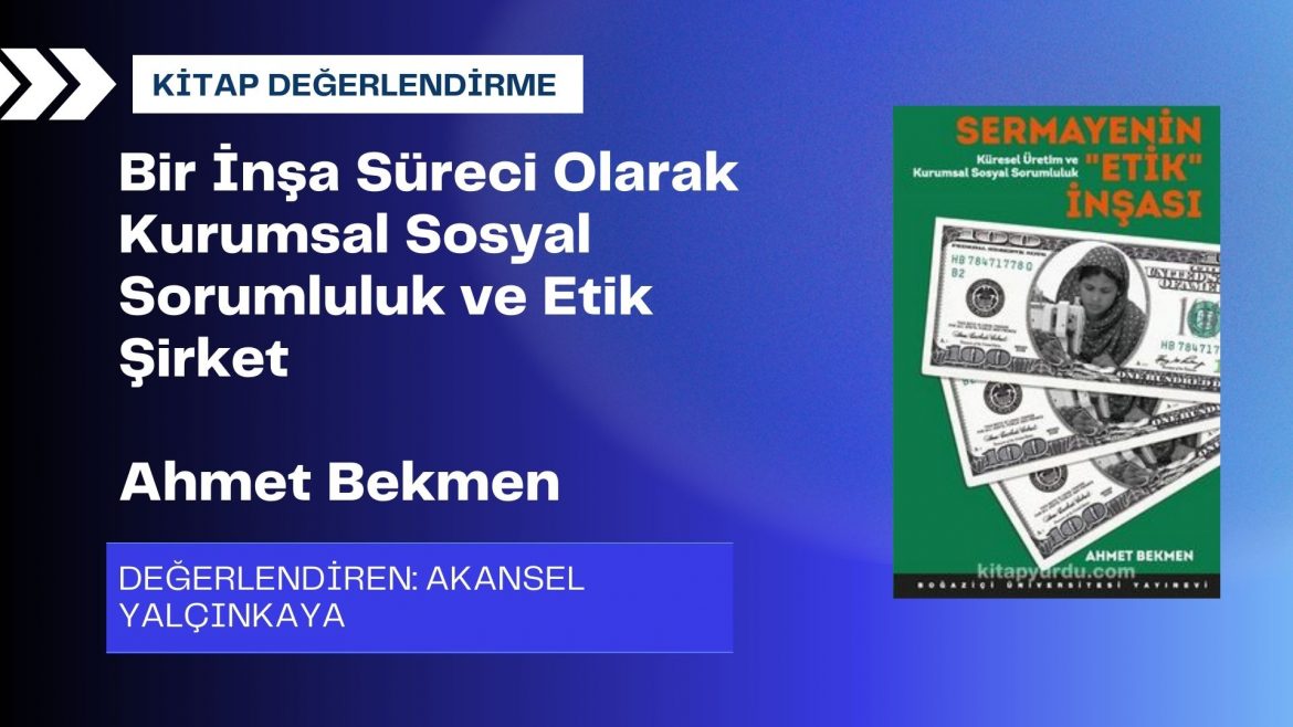 İstanbul Üniversitesi Siyasal Bilgiler Fakültesi Siyaset Bilimi ve Uluslararası İlişkiler Bölümü’nde öğretim üyesi olarak görev yapan Ahmet Bekmen’in İstanbul Üniversitesi Uluslararası İlişkiler Anabilim Dalı’nda 2011 yılında sunduğu doktora tezine dayanan ve 2014 yılında Boğaziçi Üniversitesi Yayınevi tarafından basılan Sermayenin “Etik” İnşası: Küresel Üretim ve Kurumsal Sosyal Sorumluluk adlı eseri, küreselleşme ile birlikte az gelişmiş ülkelere doğru kayan üretim örgütlenmesinin yol açtığı çalışmaya ilişkin ihlalleri ve “sorumsuzlukları” hazır giyim ve tekstil sektörü örneğinden hareketle eleştirel bir sorgulamaya tabi tutarak; söz konusu ihlallerin nasıl olup da hukuki birer sorumluluk taşımaktan ziyade etik birer sorumluluğa dönüştüğünü ve devletin bu “yetkisini” nasıl ve neden sermayenin kontrolüne bıraktığını gözler önüne sermekte ve etikle kol kola girmiş sosyal sorumluluğun yükselişini resmetmektedir.