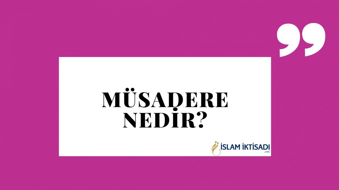 Sözlükte “ısrarla istemek” anlamındaki sudûr kökünden türeyen ve “çekip almak” mânasına gelen müsâdere, devlet tarafından hazineye irat kaydetmek veya bir süre koruma altına almak üzere ceza veya tedbir olarak bir mala el konulması tasarrufudur. Özellikle kamu görevlilerinin haksız yollarla elde ettikleri gelir veya emlâkin tamamına ya da bir kısmına devletin el koymasını ifade eder. Uygulamada, hazine açıklarını kapatmak amacıyla kamu görevlilerinin veya sivil kişilerin mallarına el konulması da bu şekilde adlandırılmıştır. Mütâlebe, münâzara, mürâfaa ve mukāseme kelimeleri de müsâdere ile eş anlamda kullanılmıştır.