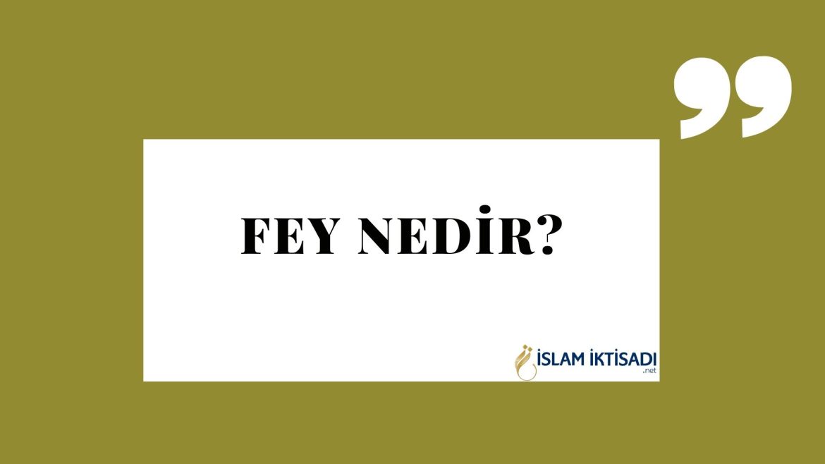 Terim olarak, Alimler arasında fey kelimesinin birbirine yakın tanımları yapılmaktadır. Bu tanımlara göre fey: Gayr-i Müslimlerden savaşılmadan elde edilen mallardır. Elde edilmesinde şiddet ve zorluk bulunmayan şeylerdir. Şer’an, düşman ülkenin mallarından Müslümanlara dönen ganimet ve haraçlardır. Harp, hile, baskın ve öldürme olmaksızın, Gayr-i Müslimlerden alınan mallar feydir. Allah’ın, savaş yapılmadan Gayr-i Müslimlerin mallarından Müslümanlara verdiği nimetlere denir.Fey, Yüce Allah’ın İslâm’a muhaliflerin mallarından sürgün, cizye veya başka yollarla anlaşma yapılarak verdiği nimetlerdir. Fey kelimesinin terim anlamıyla lügat anlamları arasında ilgi kuranlar da olmaktadır. Meselâ; Kudame b. Cafer, savaşla ele geçen düşman topraklarının onlara bırakılması sonucunda, gelirlerinden haraç alınmasına fey denilmesini, “her sene bu toplanan malların Müslümanlara rucû” etti şeklinde yorumlamakta ve bunlara fey denileceğini ileri sürmektedir. Ayrıca, nankörlüklerinden dolayı, inanmayan insanların mallarının Müslümanlara dönmesi ve dünya malının gölgeye benzetilerek, belirli bir süre sonra yok olma ihtimali, bu malları lügat anlamından hareketle, fey olarak değerlendirilmesine vesile olmuştur. Buna ilaveten fıkıhçılar arasında, Müslüman ülkenin vatandaşı olmayan yabancı tüccarlardan alınan gümrük vergilerini, fey kapsamına dahil edenler olmaktadır. İmam Şafii (ö.204/819), varisi olmaması sebebiyle hazineye intikal eden zimmilerin mallarını fey kapsamına alır.33 Ebû Yusuf (ö.182/798)’a göre ise, toprak mahsullerinden alınan vergi fey’dir. Fey’in geniş bir tanımını da Ebû Ubeyd yapmaktadır. Ona göre, Gayr-i Müslimlerin verdiği cizye, savaşla elde edilen toprakların haracı, zımmîlerin mallarından alınan yirmide bir öşür, onlardan alınan onda bir oranındaki ticaret vergisi, fey olarak değerlendirilir.