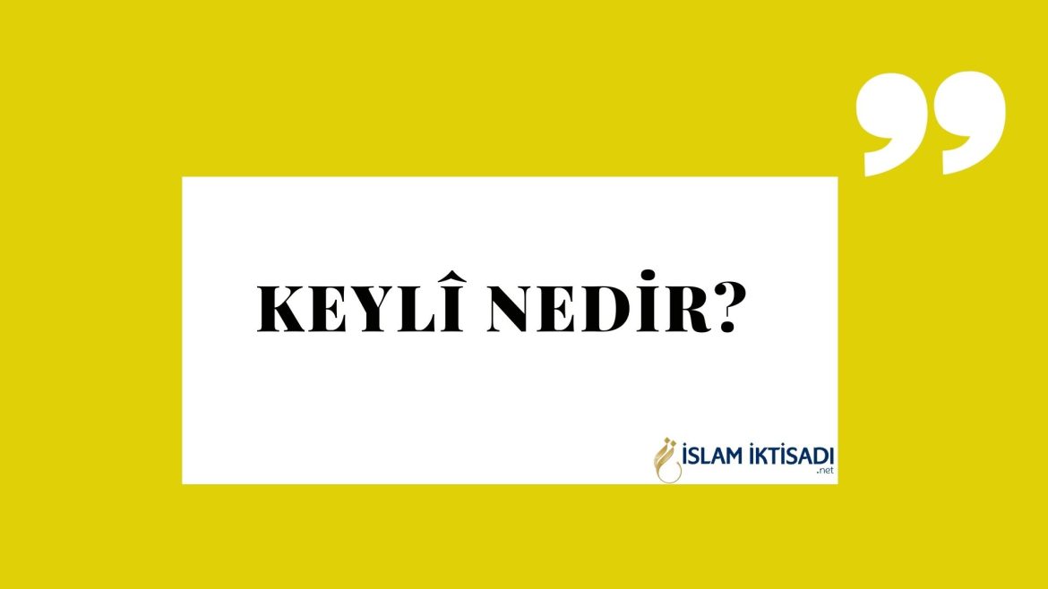 Sözlükte keyl “hacim ölçü birimleriyle ölçmek; hacim ölçüsü ve ölçek”, bu kelimenin nisbet eki almış hali olan keylî de (çoğulu keyliyyât) “hacim ölçü birimleriyle ölçülerek işlem gören mal” anlamına gelir. Kur’an’da keyl “ölçmek” ve “ölçü” mânasında on yerde geçer (el-En‘âm 6/152; el-A‘râf 7/85; Yûsuf 12/59, 60, 63, 65 [iki kere], 88; el-İsrâ 17/35; eş-Şuarâ 26/181). Aynı kökten türetilen ve sözlükte “hacim ölçü aleti” anlamına gelen mikyâl, mecazi olarak daha çok bir bölgede yaygınlık kazanmış belli bir ölçü biriminin adı olarak kullanılır. Türkçe’de kile böyledir. “Hacim ölçü birimleriyle ölçülmüş” mânasındaki mekîl de (çoğulu mekîlât) hukuk terimi olarak keylî anlamında kullanılmaktadır. Nitekim Mecelle’de “Keylî ve mekîl keyl ile ölçülen şey” diye tarif edilmiştir.