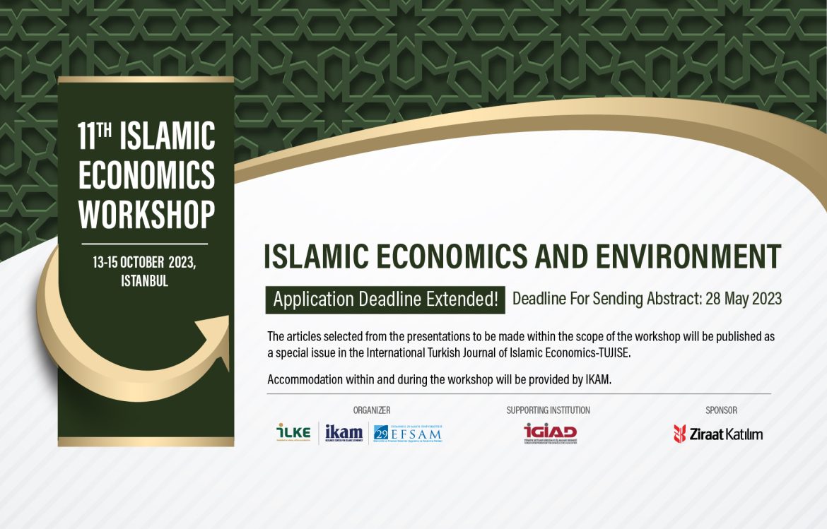 Research Center for Islamic Economics (IKAM), in collaboration with the Turkish Entrepreneurship and Business Ethics Association (İGİAD) and Istanbul 29 Mayis University Economic and Financial Systems Application and Research Center (EFSAM), will organize its 11th Islamic Economics Workshop from 13 to 15 October 2023 under the theme “Islamic Economics and Environment.”